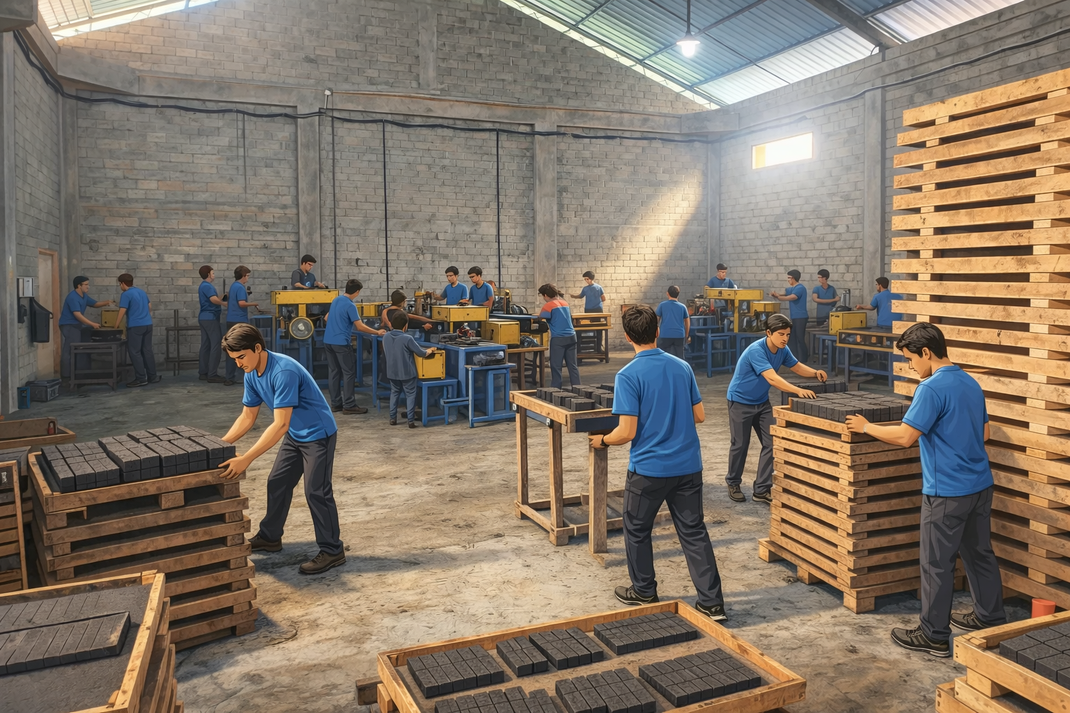 A professional shisha charcoal factory Indonesia ensures proper drying stages before crushing and briquetting to guarantee uniform density and performance.