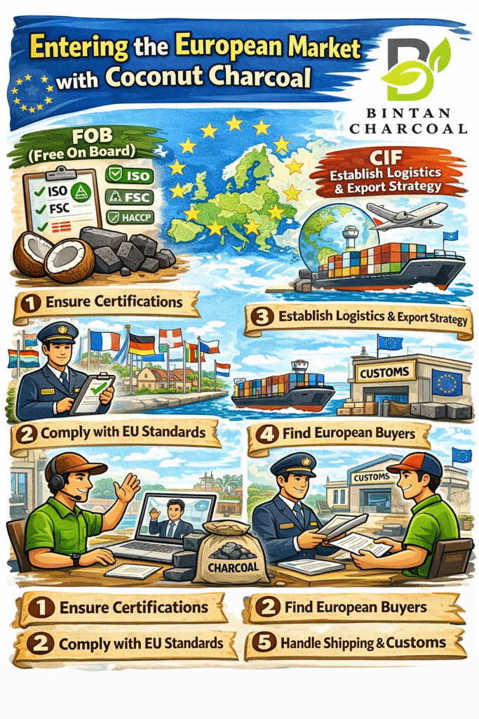 Entering the European Market with Coconut Charcoal: A Complete Procedure 🌍🔥