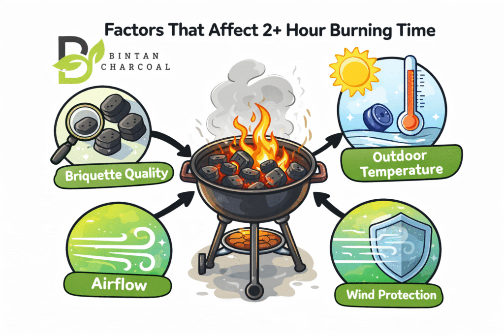 🔥 Factors That Affect 2+ Hour Burning Time (Complete Guide for Premium Charcoal)