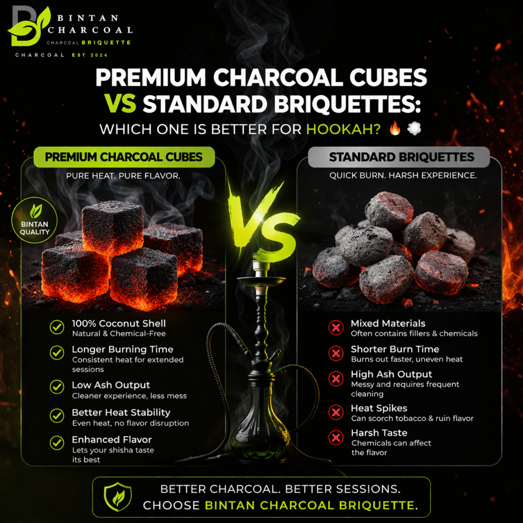 In the global hookah industry, choosing the right shisha charcoal is essential for achieving the perfect smoking experience. Many hookah lounges, distributors, and importers often compare premium charcoal cubes with standard charcoal briquettes to determine which option provides better performance. As a professional charcoal manufacturer and trusted charcoal supplier & exporter, Indonesian companies have become […]