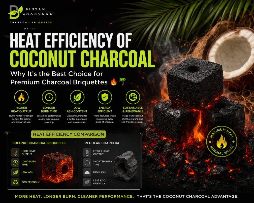 Heat Efficiency of Coconut Charcoal: Why It’s the Best Choice for Premium Charcoal Briquettes 🔥🌴